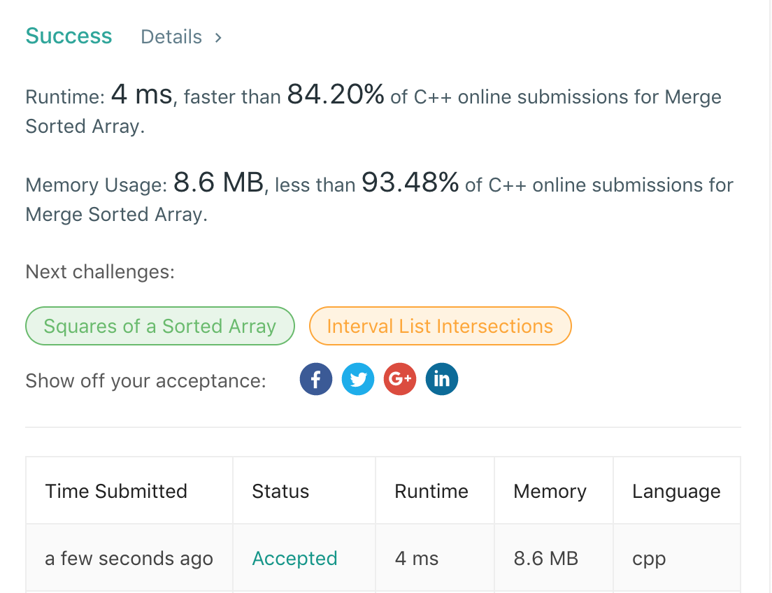 从后往前处理,从nums1和nums2的最后一个元素开始比较,然后将二者较大的放置于nums1最后一个位置,其余依次类推。这个思路更简洁。代码如下: