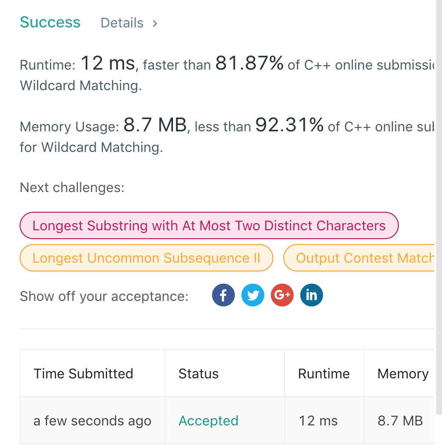 参考: https://leetcode.com/problems/wildcard-matching/discuss/17810/Linear-runtime-and-constant-space-solution https://www.cnblogs.com/grandyang/p/4401196.html https://www.youtube.com/watch?v=-8QnRMyHo_o </vector