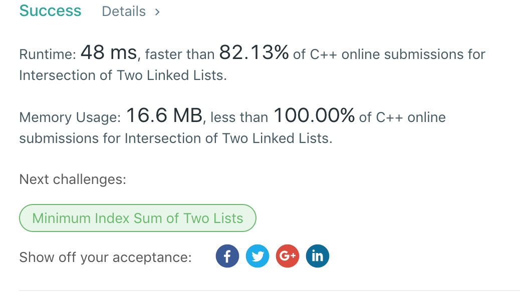 Input Explanation: The intersected node’s value is 2 (note that this must not be 0 if the two lists intersect). From the head of A, it reads as [0,9,1,2,4]. From the head of B, it reads as [3,2,4]. There are 3 nodes before the intersected node in A; There are 1 node before the intersected node in B.