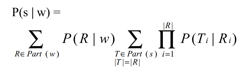 其中,w为用户期望输入字符,s为实际输出字符。Part(w)表示将字符w划分为相邻子串的各种形式集合,R属于Part(w)中的一个特殊的划分,由j个连续片段组成。