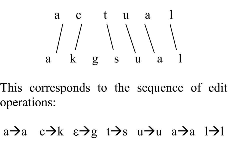 训练模型需要纠错对,即{\(w_{i},s_{i}\)}这样的纠错对。首先对纠错对按照单词级别进行对齐,比如纠错对:{akgsual,actual},做如下方式的对齐: